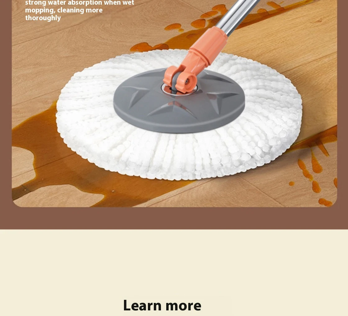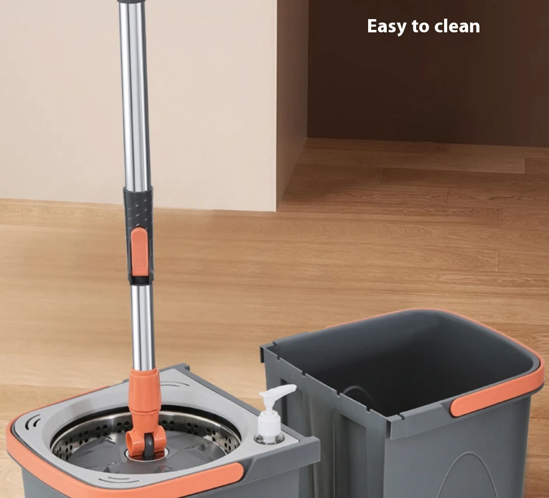 【Rotatable Mop Head】The mop head can be rotated by 360°, When cleaning the room, the rotatable design allows the mop head to easily enter the bottom of the bed, the bottom of the sofa,cabinet and other difficult-to-clean places to clean your house in all directions.And the mop can be hung on the wall without taking up space. spin mop and bucket set comes with 1 machine washable reusable microfiber mop pads that are strong water absorption.